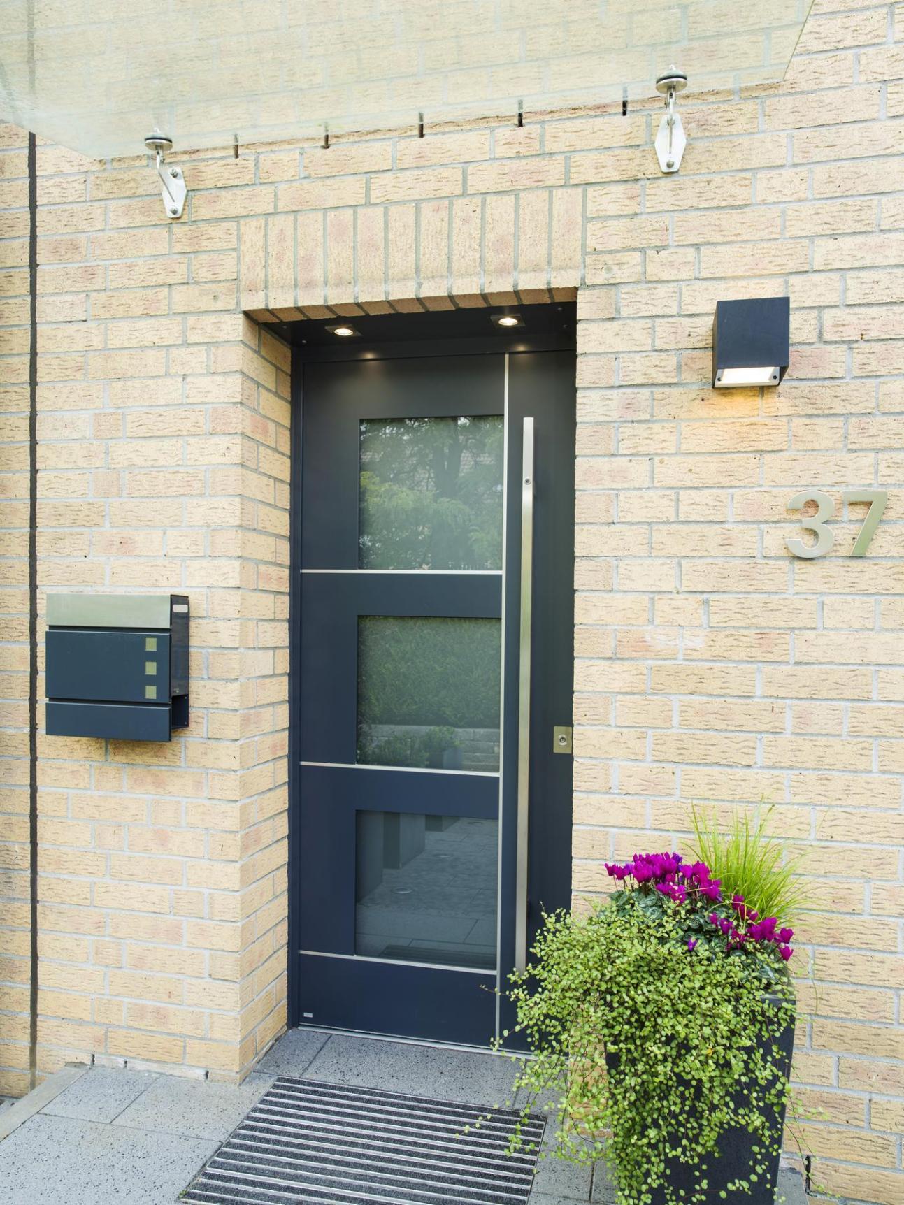 In Kaarst bei Düsseldorf wurde eine moderne, anthrazitgraue (RAL 7016) Haustür von PaX mit geprüfter und zertifizierter Einbruchhemmung der Widerstandsklasse RC2 eingebaut. Drei große Lichtausschnitte mit satiniertem Glas sorgen für viel natürliches Tageslicht und zugleich für Privatsphäre. Die Farbgestaltung wurde harmonisch auf die bestehenden Fenster abgestimmt. Besonders komfortabel lässt sich die Haustür dank des im Griff integrierten Fingerscan öffnen. Beratung, exaktes Aufmaß und fachgerechte Montage erfolgten durch den PaXpartner-Betrieb H. & G. Jeschke, Inhaber Driton Berisha.