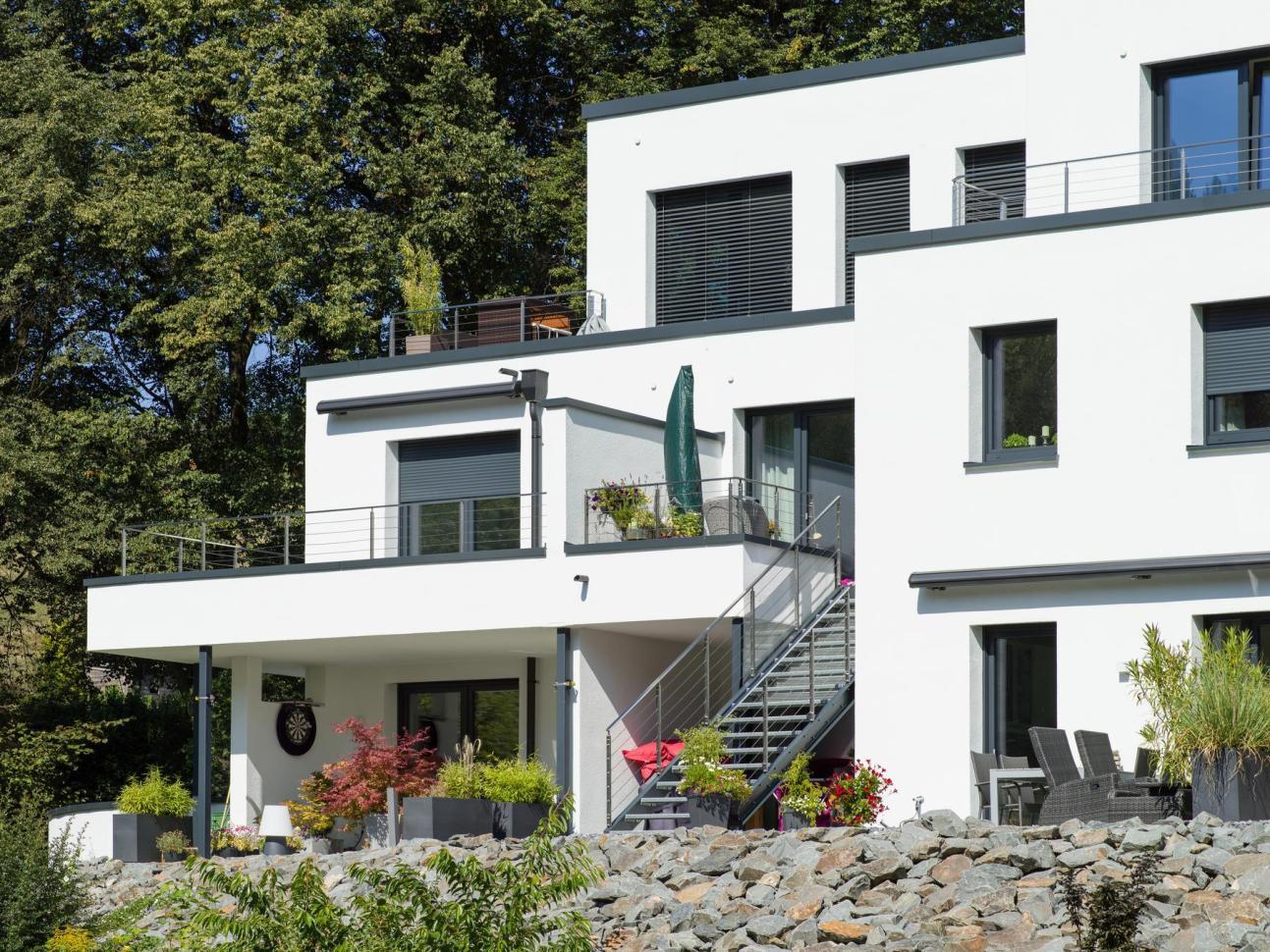 Beeindruckendes Mehrfamilienhaus mit Fenstern und Terrassentüren von PaX