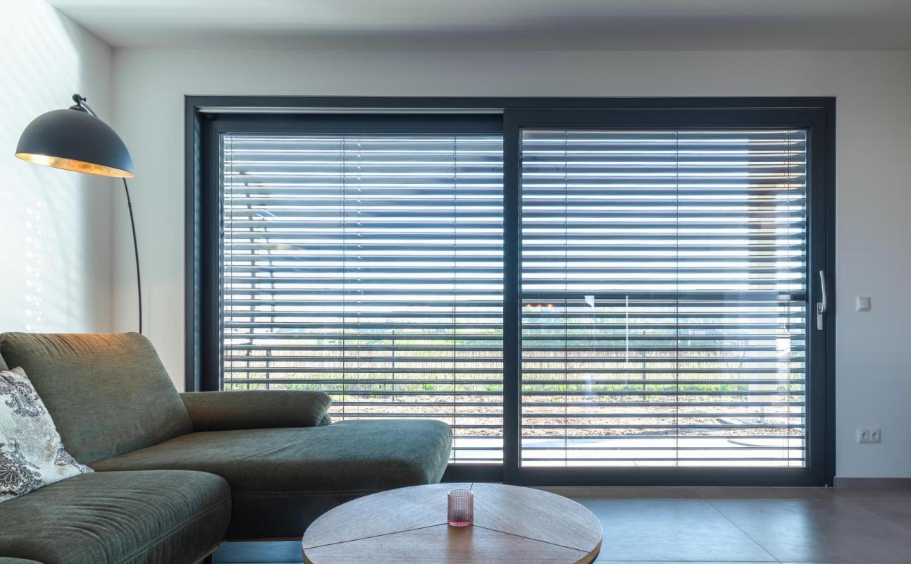 Beidseitig grau folierte Kunststofffenster und Hebeschiebetüren für Einfamilien-Neubau in Scheinfeld