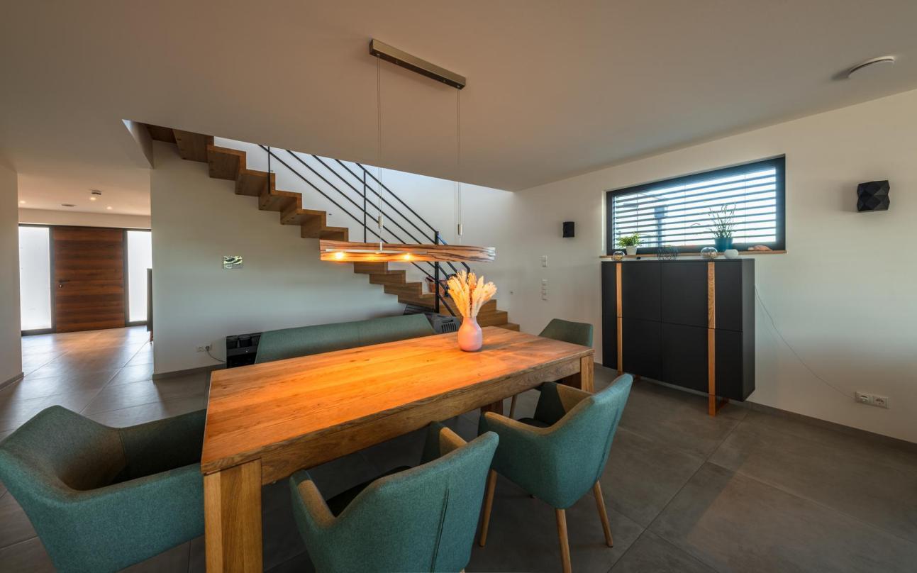 Für ein modernes Neubau-Einfamilienhaus mit Garage, großzügigem Garten und Solaranlage in Scheinfeld durften wir hochwertige PaX Kunststofffenster in Anthrazit liefern. Die beidseitig grau folierten Fenster sorgen innen wie außen für ein zeitlos elegantes Erscheinungsbild. Im Obergeschoss haben wir eine Balkontür für den direkten Zugang zum Balkon realisiert, im Erdgeschoss großzügige, insgesamt bis zu vier Meter breite Hebeschiebetüren, die fließend zur Terrasse und in den Garten überleiten. Alle Elemente sind mit Raffstore-Beschattung für optimalen Licht- und Wärmeschutz ausgestattet. Beratung, exaktes Aufmaß und die fachgerechte Montage wurden von unserem erfahrenen Fachbetrieb Meyer Baufertigteile GmbH & Co. KG übernommen.