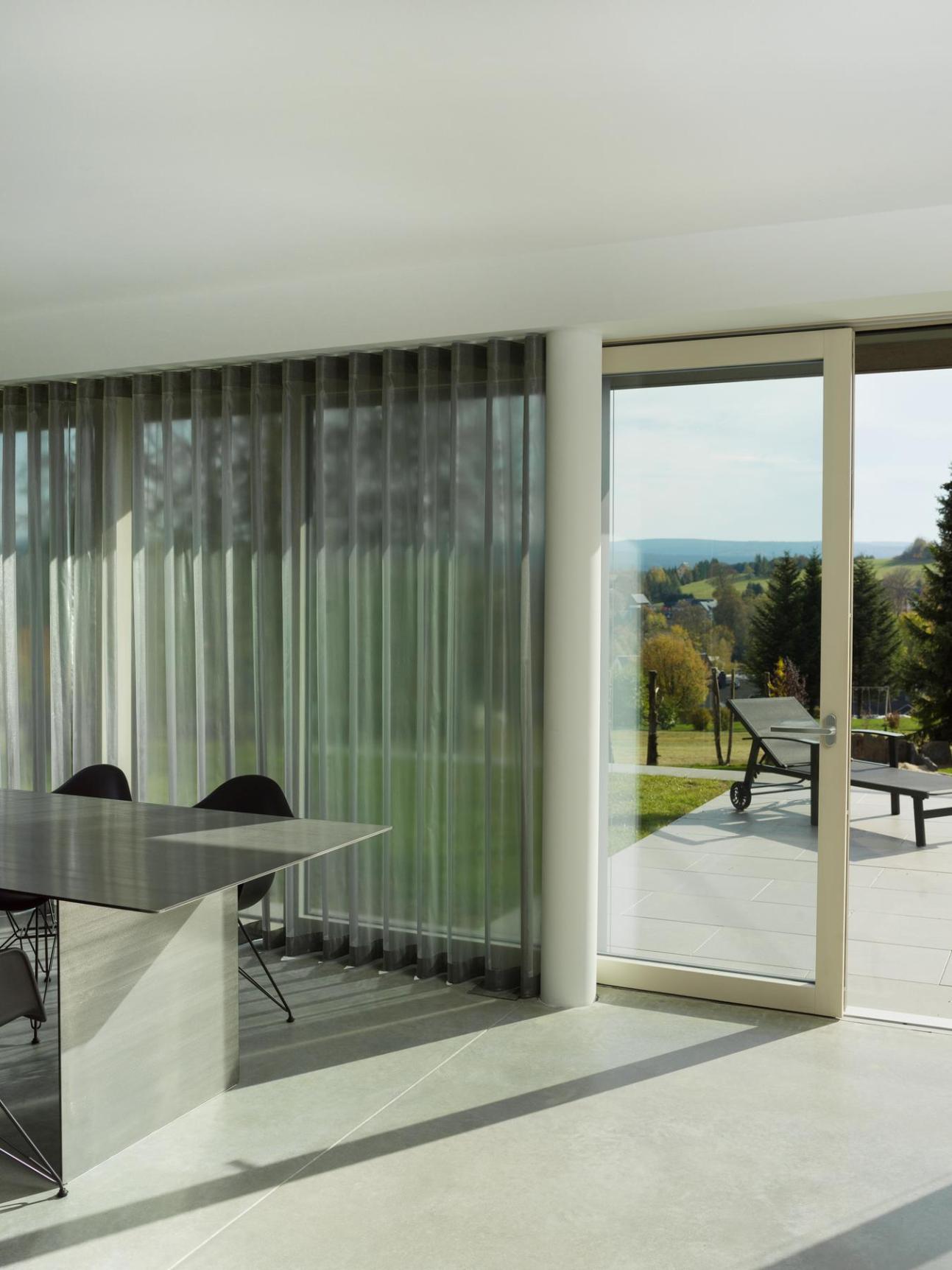 Modernes Wohnhaus mit großzügigen Glasflächen in Pfosten-Riegel-Bauweise