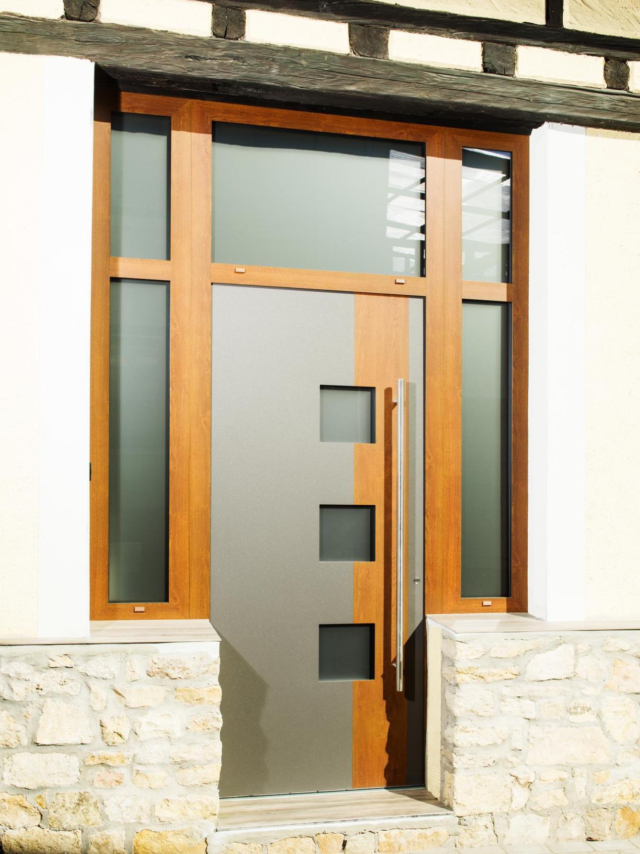 PaXentrée Aluminium-Haustür mit Holzdekor-Oberfläche in Ingelheim
