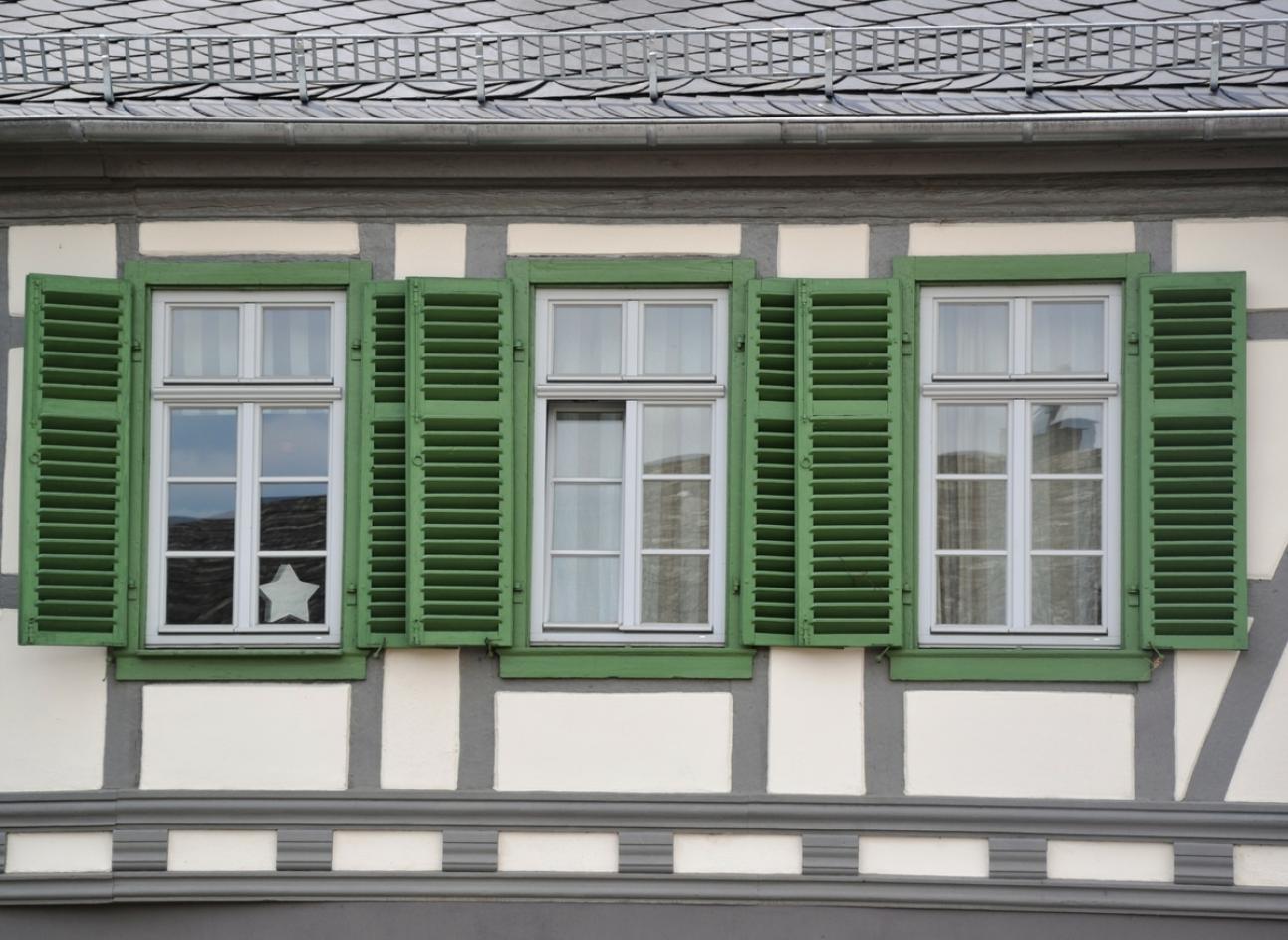 Die „alten“ Fenster aus den 1970er Jahren entsprachen in diesem Zusammenhang auch nicht mehr den Vorstellungen der Eigentümer. Es waren einflügelige Fenster, die nur durch die aufgeblendete Teilung wie vierflügelige Fenster ausgesehen haben und sie erfüllten auch nicht die Schallschutzanforderungen, die der Erhöhung des Wohnkomforts nach der Sanierung zu Grunde gelegt wurden. Die Fenster im Obergeschoß, Gauben und Giebelbereichen wurden also entsprechend neu konstruiert. Nun sind sie wieder konstruktiv vierflügelig und sorgen mit einer speziellen Schallschutzverglasung und zwei Dichtungsebenen für himmlische Ruhe in den Räumen. Und die braucht es auch, denn seit Kurzem bietet die Stadt Oestrich-Winkel die Räume im Erdgeschoß den Bürger:innen als kostenlosen Co-Working Space an.